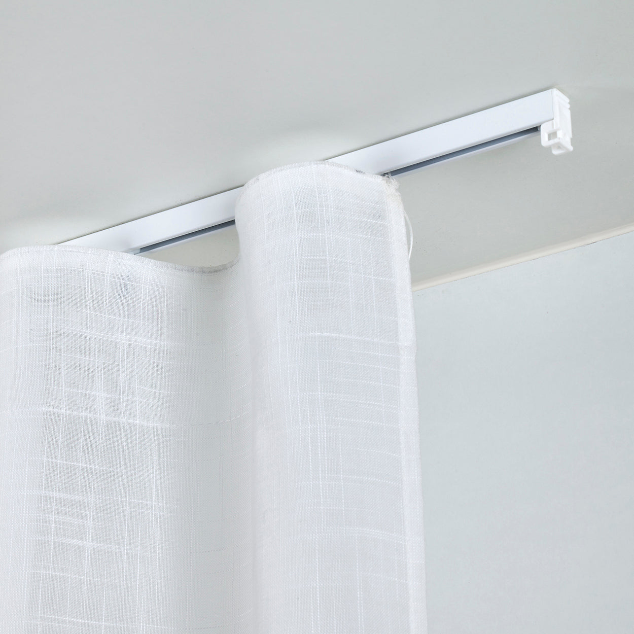 Rail en aluminium adapté à tout type de rideau, de grande qualité et aux lignes élégantes. Son profil aux dimensions réduites lui confère une élégance minimaliste et comprend des glissières à roulettes qui facilitent le mouvement du rideau.