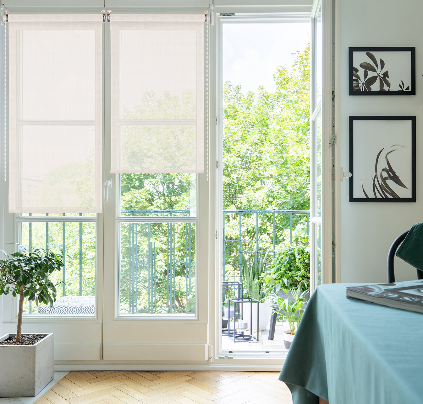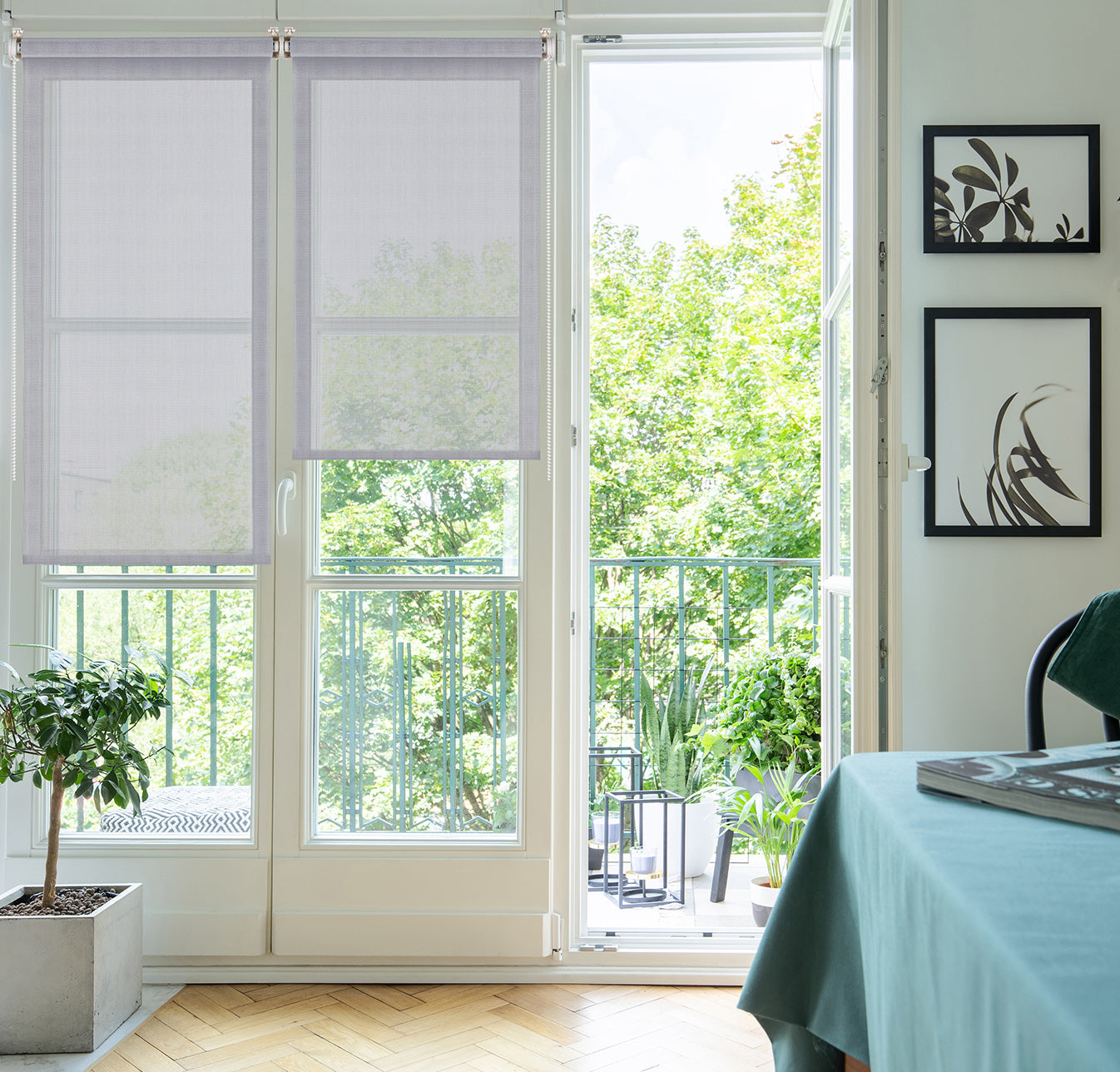 Store enroulable en tissu technique screen qui filtre la lumière sans perdre la vue extérieure, protège des rayons UV et est résistant à l'eau.